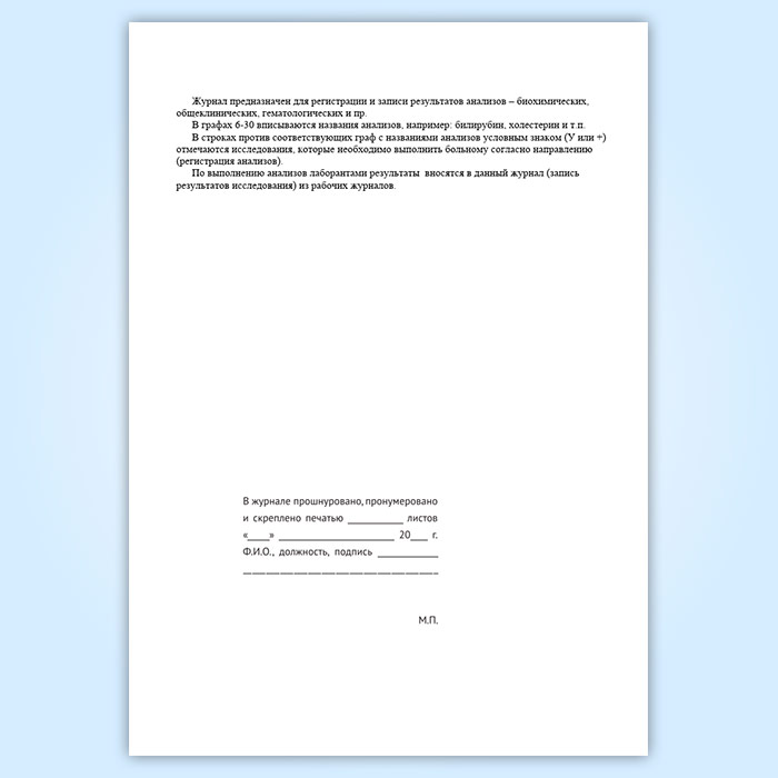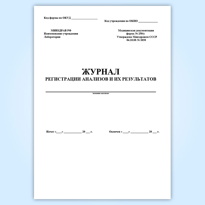 Журнал регистрации анализов и их результатов (форма 250/у) в Магнитогорске купить