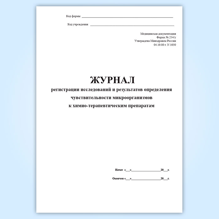Журнал регистрации исследований и результатов определения чувствительности микроорганизмов к химио-терапевтическим препаратам (форма 254/у) в Магнитогорске купить