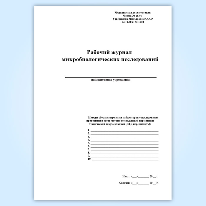 Рабочий журнал микробиологических исследований (форма 253/у) в Магнитогорске купить