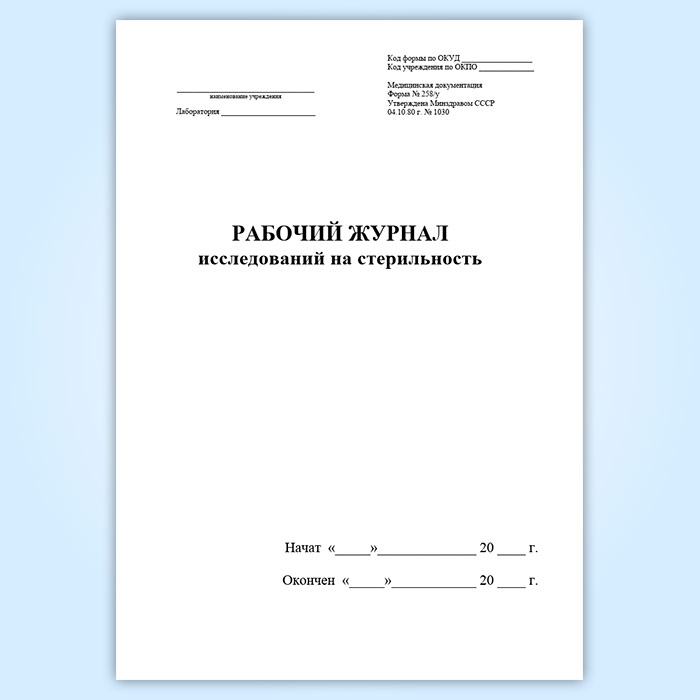 Рабочий журнал исследований на стерильность (форма 258/у) в Магнитогорске купить
