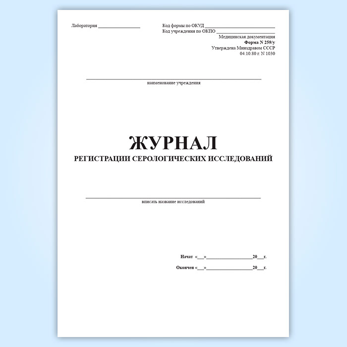Журнал регистрации серологических исследований (форма 259/у) в Магнитогорске купить