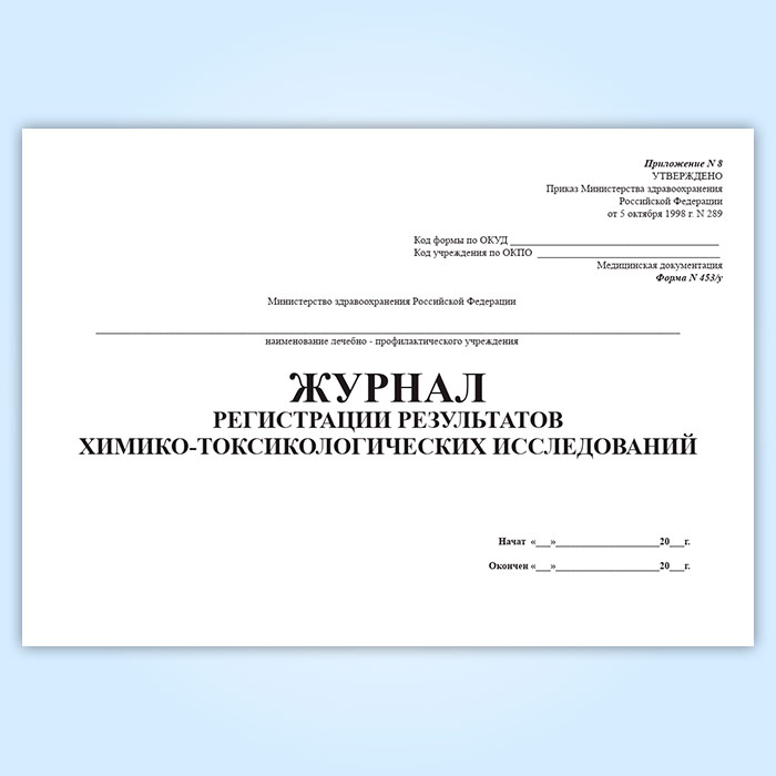 Журнал регистрации результатов химико-токсикологических исследований (форма 453у-06) в Магнитогорске купить