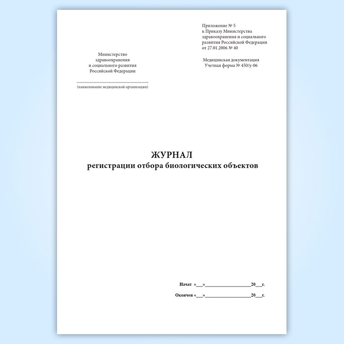 Журнал регистрации отбора биологических объектов (форма 450у-06) в Магнитогорске купить
