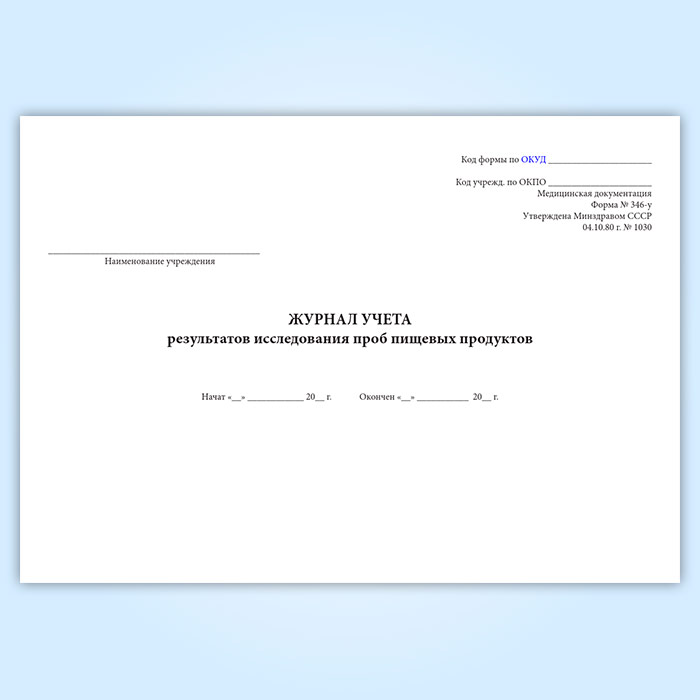 Журнал учета результатов исследования проб пищевых продуктов (форма 346/у) в Магнитогорске купить