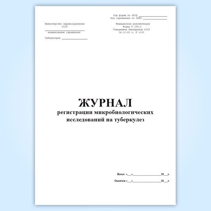Журнал регистрации микробиологических исследований на туберкулез (форма 255/у) в Магнитогорске купить