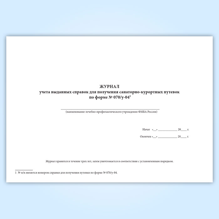 Журнал учета выданных справок для получения санаторно-курортных путевок (форма № 070/у-04) в Магнитогорске купить