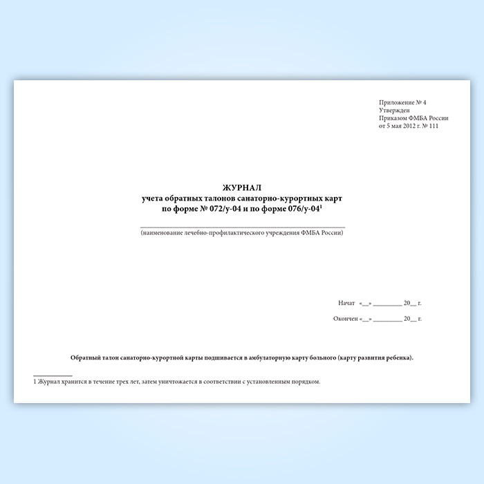 Журнал учета обратных талонов санаторно-курортных карт по форме (№ 072/у-04 и по форме 076/у-04 ) в Магнитогорске купить