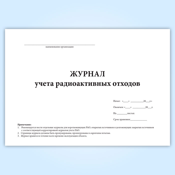Журнал учета радиоактивных отходов (СанПиН 2.6.1.3288-15) в Магнитогорске купить