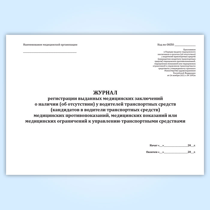 Журнал регистрации выданных медицинских заключений о наличии (об отсутствии) у водителей транспортных средств (кандидатов в водители транспортных средств) медицинских противопоказаний, медицинских показаний или медицинских ограничений к управлению транспортными средствами в Магнитогорске купить