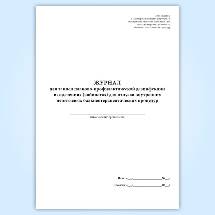 Журнал для записи планово-профилактической дезинфекции в отделениях (кабинетах) для отпуска внутренних непитьевых бальнеотерапевтических процедур в Магнитогорске купить