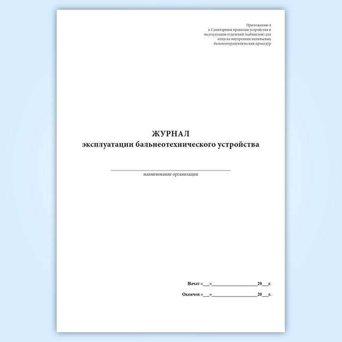 Журнал эксплуатации бальнеотехнического устройства в Магнитогорске купить