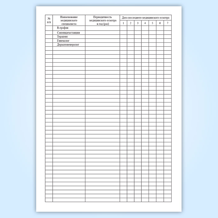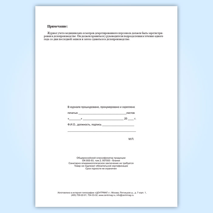Журнал учета медицинских осмотров декретированного персонала в Магнитогорске купить