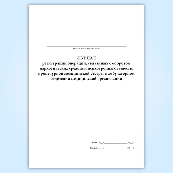 Журнал регистрации операций, связанных с оборотом наркотических средств и психотропных веществ, процедурной медицинской сестры в амбулаторном отделении медицинской организации в Магнитогорске купить