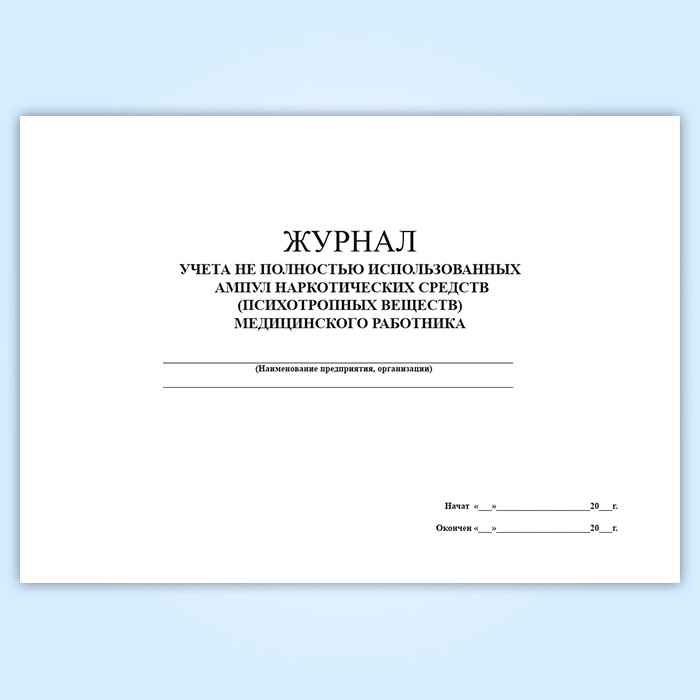 Журнал учета не полностью использованных ампул наркотических средств (психотропных веществ) медицинского работника в Магнитогорске купить