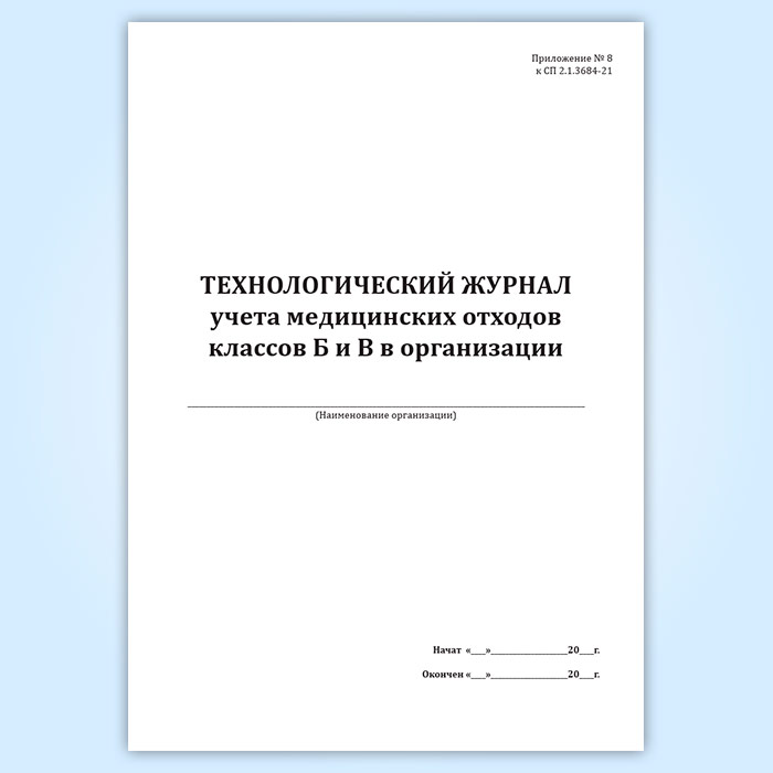 Технологический журнал учета медицинских отходов классов Б и В в организации в Магнитогорске купить