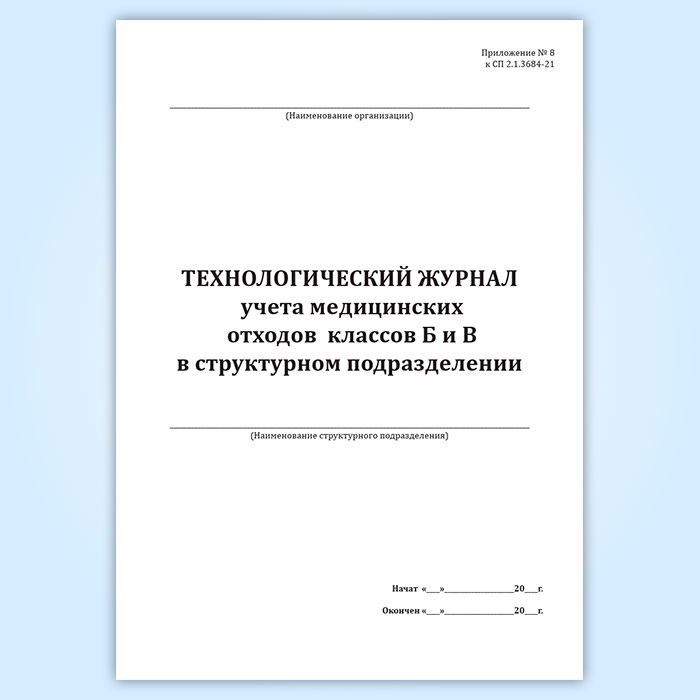 Технологический журнал учета медицинских отходов классов Б и В в структурном подразделении в Магнитогорске купить