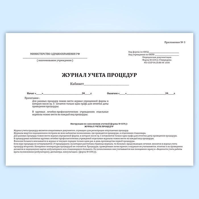 Журнал учета процедур (форма № 029/у) в Магнитогорске купить