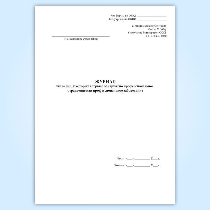 Журнал учета лиц, у которых впервые обнаружено профессиональное отравление или профессиональное заболевание (форма 363-у) в Магнитогорске купить