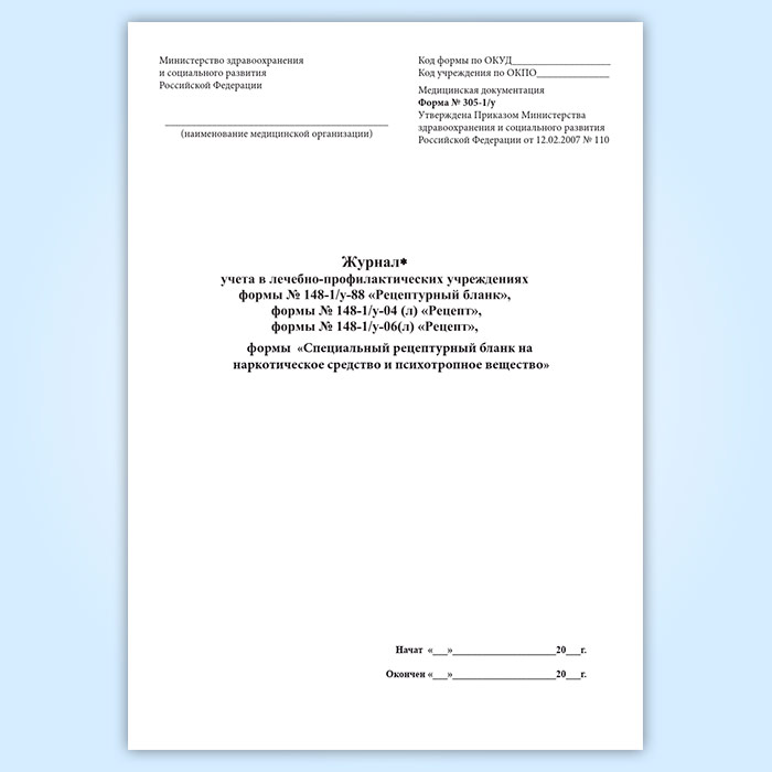 Журнал учета в лечебно-профилактических учреждениях формы 148-1/у-88 «Рецептурный бланк», 148-1/у-04(л) «Рецепт», 148-1/у-06(л) «Рецепт», формы «Специальный рецептурный бланк на наркотическое средство и психотропное вещество форма» в Магнитогорске купить