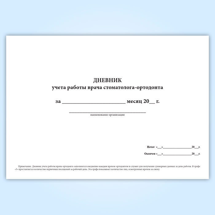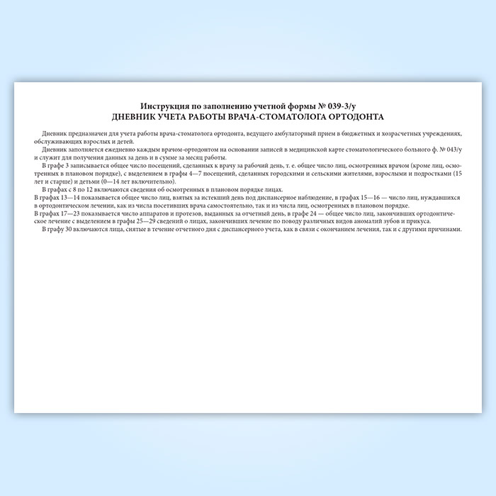 Дневник учета работы врача стоматолога-ортодонта (форма 039-3у) в Магнитогорске купить