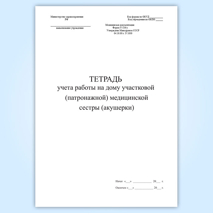 Тетрадь учета работы на дому участковой (патронажной) медицинской сестры (акушерки) (форма 116/у) в Магнитогорске купить