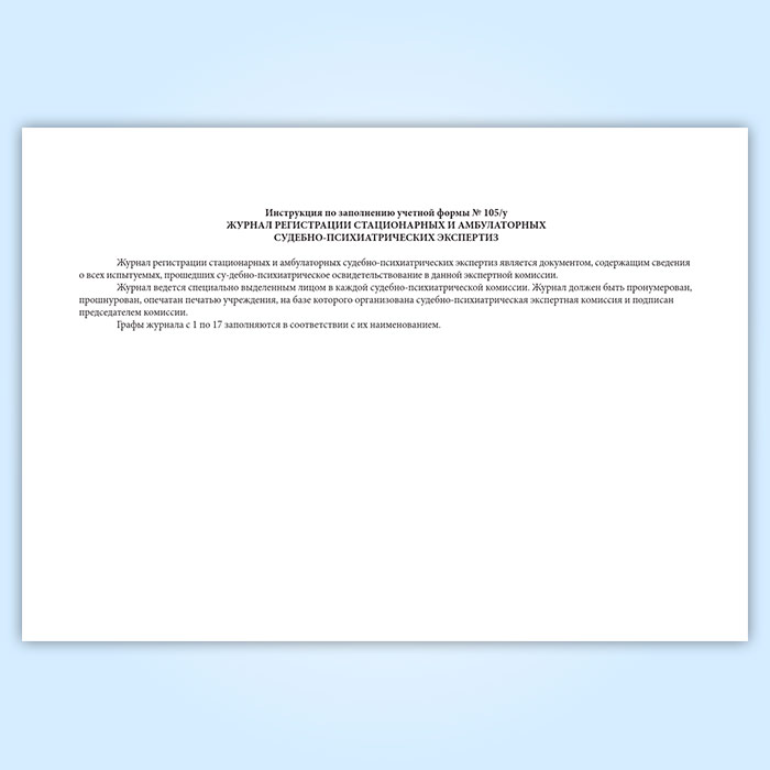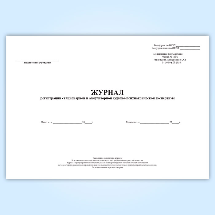 Журнал регистрации стационарной и амбулаторной судебно-психиатрической экспертизы (форма 105/у) в Магнитогорске купить