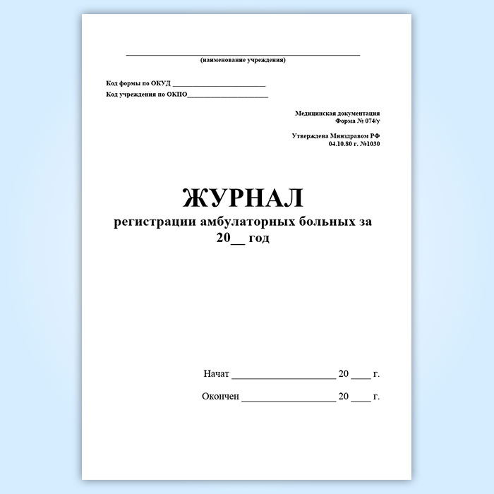 Журнал регистрации амбулаторных больных (форма 074/у) в Магнитогорске купить