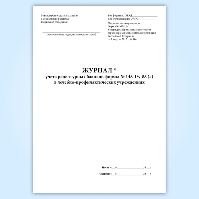 Журнал учета рецептурных бланков формы № 148-1/у-88 (л) в лечебно-профилактических учреждениях форма 305/у-1 в Магнитогорске купить