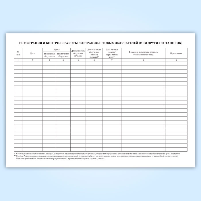 Журнал учета работы ультрафиолетовых облучателей (или других установок) (обсерватор) в Магнитогорске купить