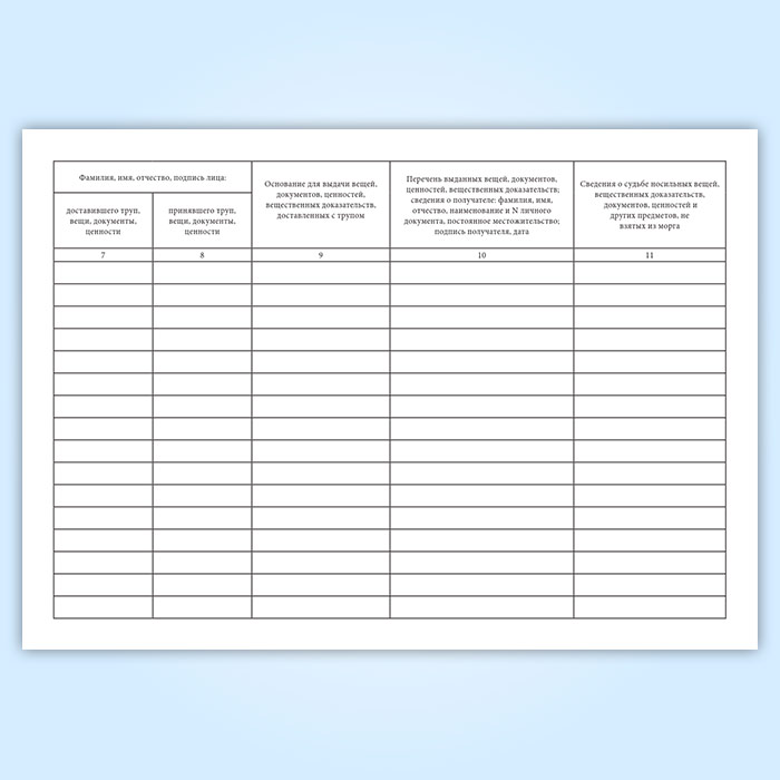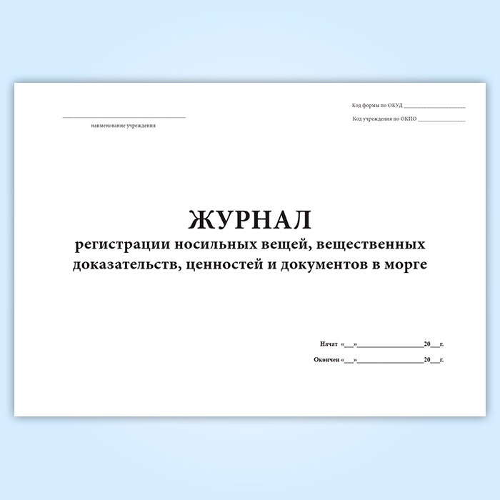 Журнал регистрации носильных вещей, вещественных доказательств, ценностей и документов в морге (форма 191/у) в Магнитогорске купить