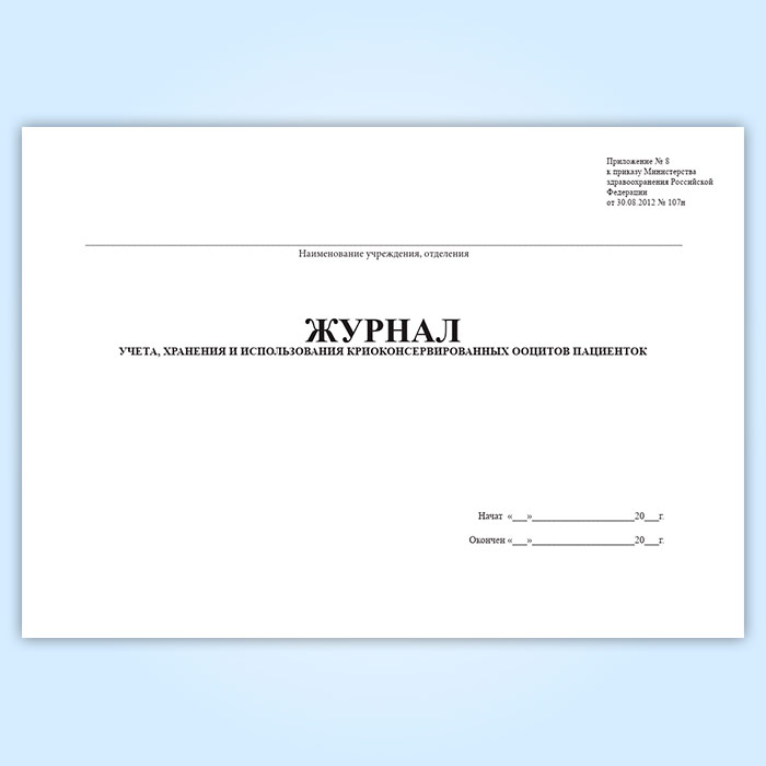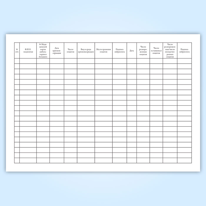 Журнал учета, хранения и использования криоконсервированных ооцитов пациенток в Магнитогорске купить