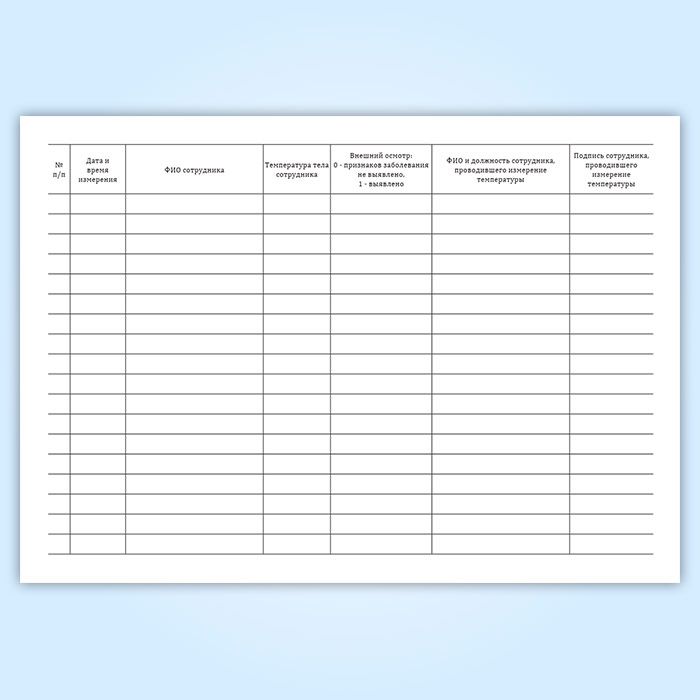 Журнал учета измерения температуры сотрудников (горизонтальный) в Магнитогорске купить