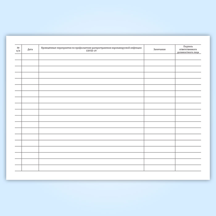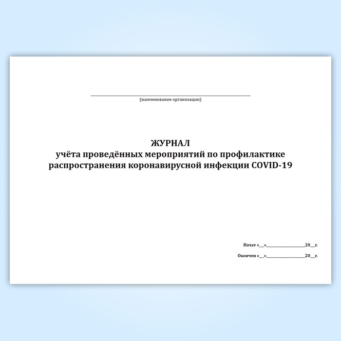 Журнал учета проведенных мероприятий по профилактике распространения коронавирусной инфекции COVID-19 в Магнитогорске купить