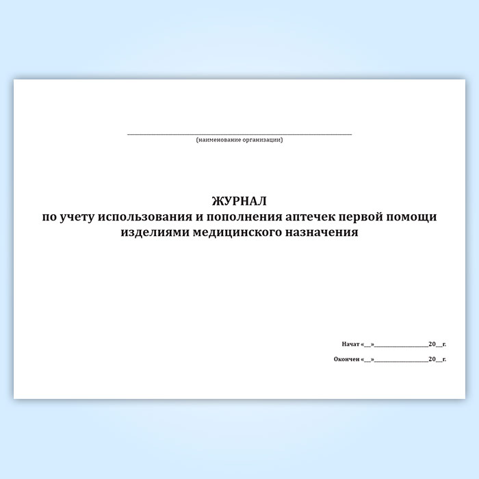 Журнал по учету использования и пополнения аптечек первой помощи изделиями медицинского назначения в Магнитогорске купить