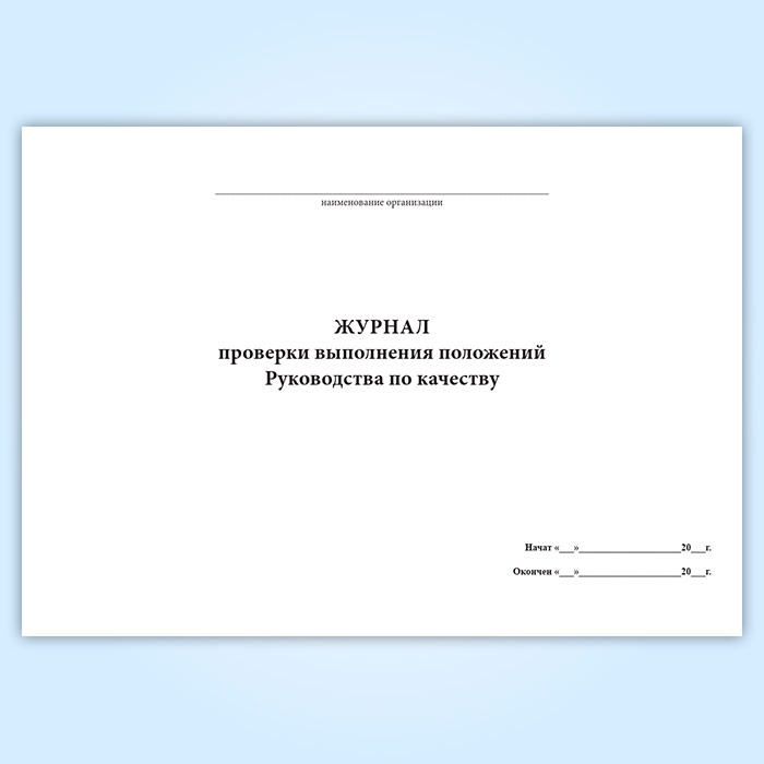Журнал проверки выполнения положений Руководства по качеству в Магнитогорске купить