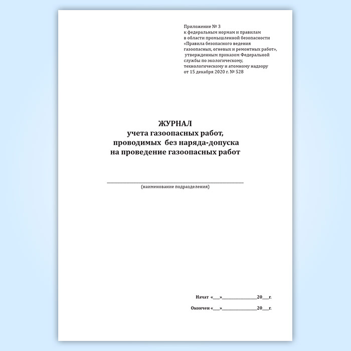 Журнал учета газоопасных работ, проводимых без наряда-допуска на проведение газоопасных работ в Магнитогорске купить