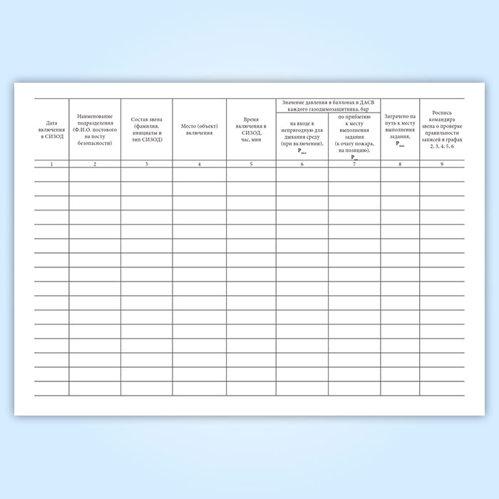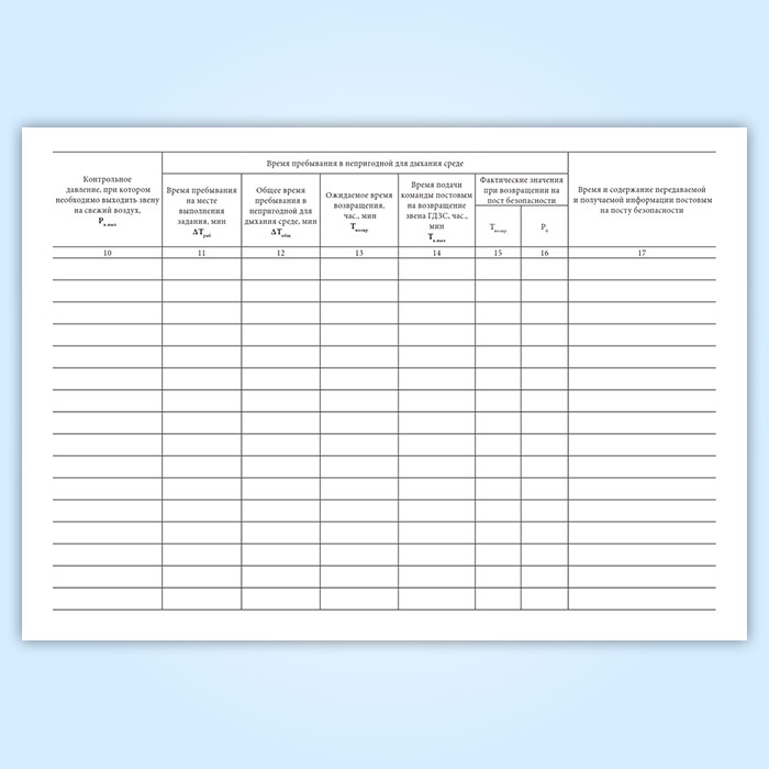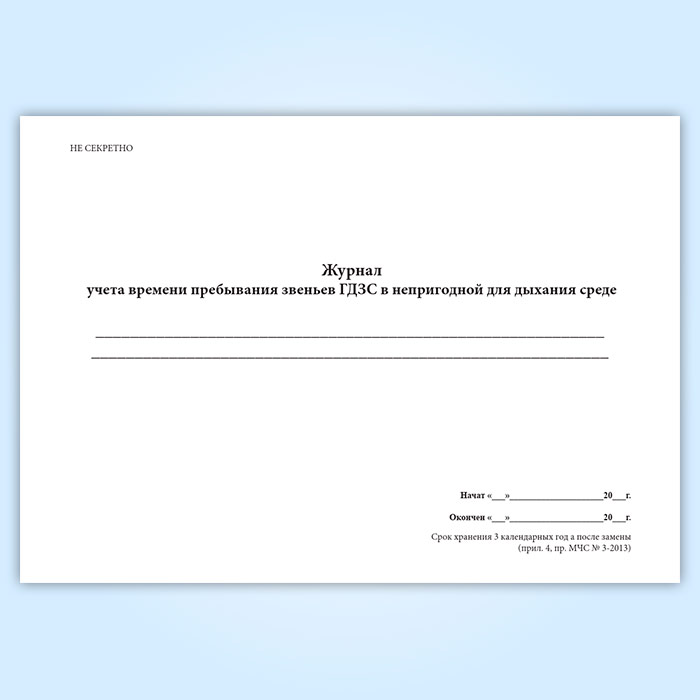 Журнал учета времени пребывания звеньев ГДЗС в непригодной для дыхания среде в Магнитогорске купить