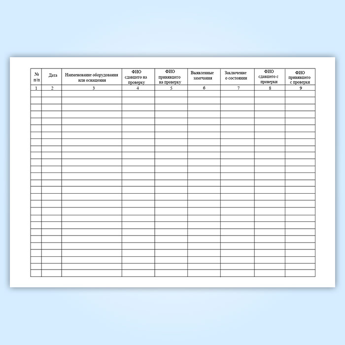 Журнал регистрации сдачи и выдачи оборудования и средств технического оснащения НАСФ на проверку в Магнитогорске купить