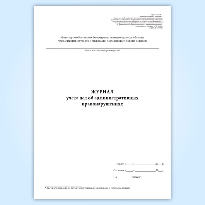 Журнал учета дел об административных правонарушениях (Приказ МЧС России от 14.06.2016 № 323) в Магнитогорске купить