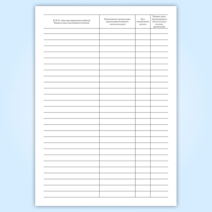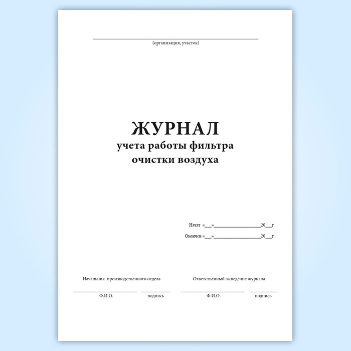 Журнал учета работы фильтра очистки воздуха в Магнитогорске купить