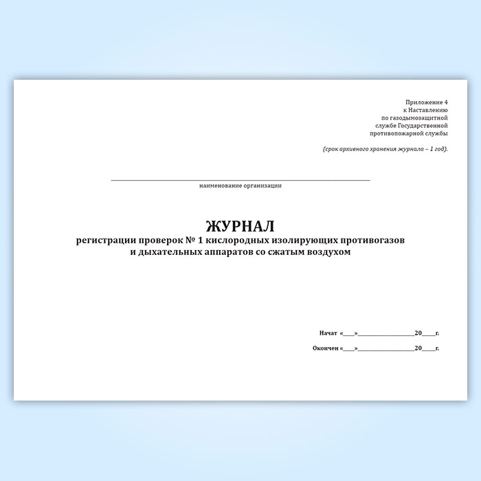 Журнал регистрации проверок № 1 кислородных изолирующих противогазов и дыхательных аппаратов со сжатым воздухом в Магнитогорске купить