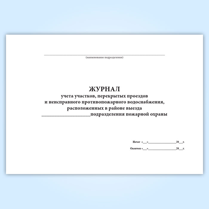 Журнал учета участков, перекрытых проездов и неисправного противопожарного водоснабжения, расположенных в районе выезда подразделения пожарной охраны в Магнитогорске купить