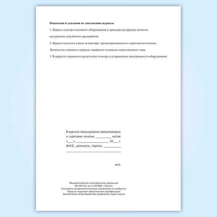 Журнал осмотра основного оборудования и арматуры резервуара (нефтепродукты) в Магнитогорске купить