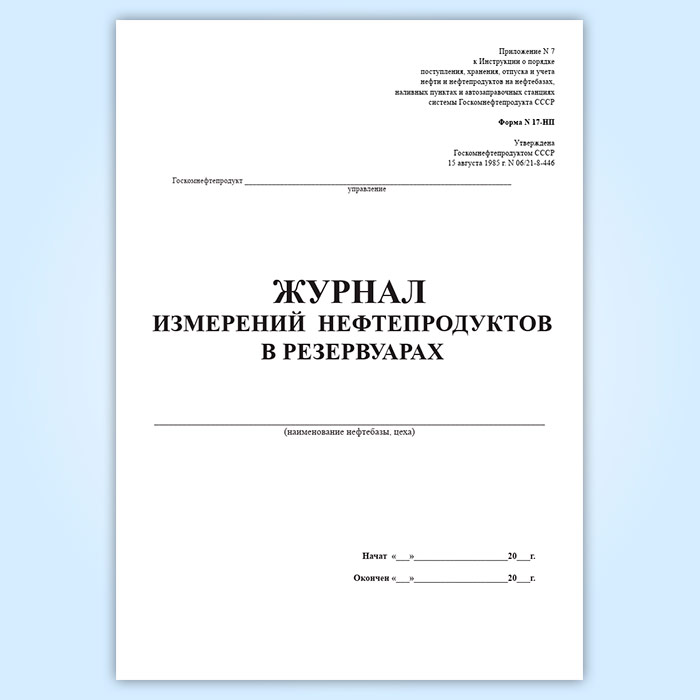 Журнал измерений нефтепродуктов в резервуарах (форма 17-НП) в Магнитогорске купить