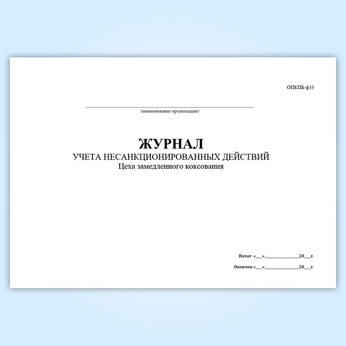 Журнал учета несанкционированных действий цеха замедленного коксования (ОПКПБ-ф33) в Магнитогорске купить