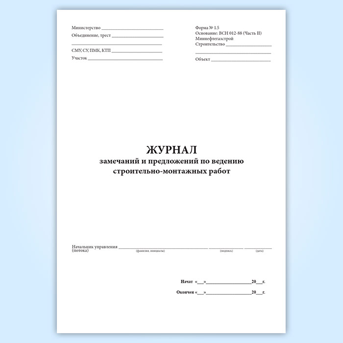 Журнал замечаний и предложений по ведению строительно-монтажных работ в Магнитогорске купить