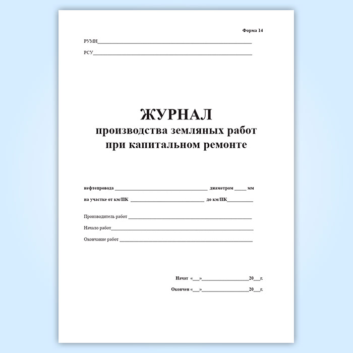 Журнал производства земляных работ при капитальном ремонте (форма 14) в Магнитогорске купить