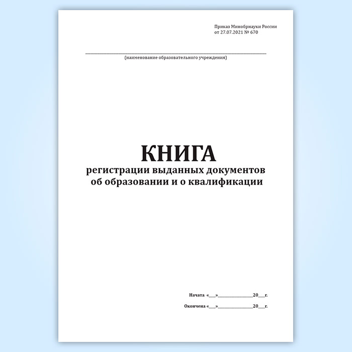Книга регистрации выданных документов об образовании и о квалификации (Приказ Минобрнауки России от 27.07.2021 № 670) в Магнитогорске купить