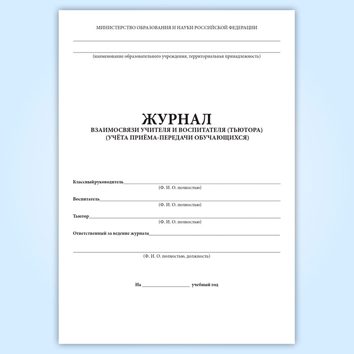 Журнал взаимосвязи учителя и воспитателя (тьютора) (учета-передачи учащихся) в Магнитогорске купить