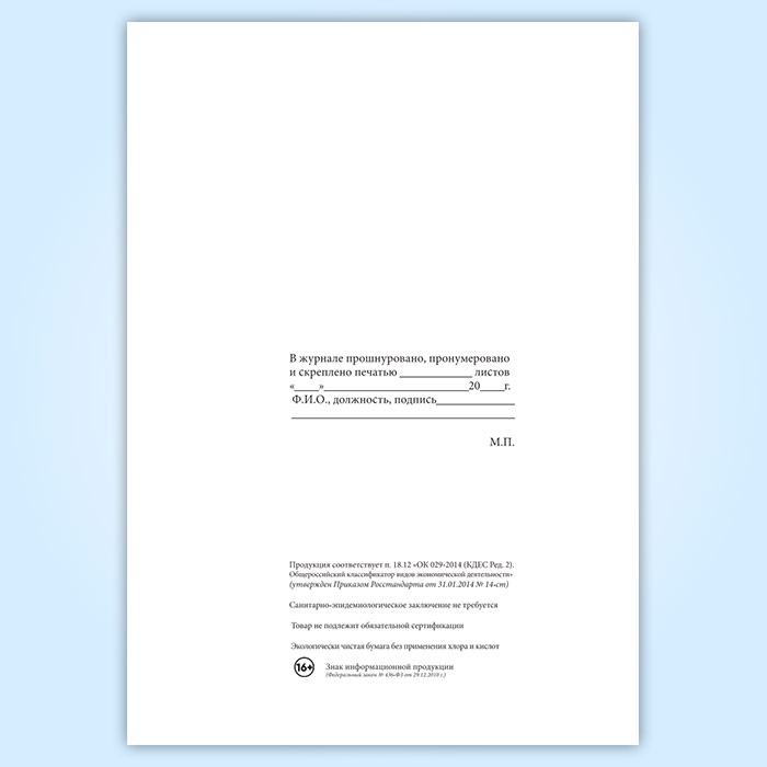 Вы получаете печатную продукцию прошнурованной и c местом для вашей печати в соответствии с действующими нормативными документами: